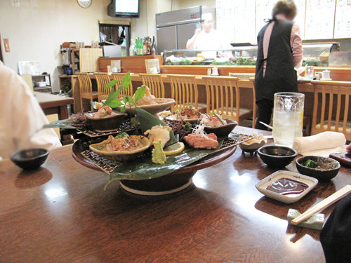 お鮨を頂いた後は小上がりに移動させて頂いて、ゆっくりお酒と刺盛りを楽しみます。