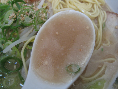 タレはあまり効いてない、コクはあるけどドライな感じの塩豚骨ラーメン。