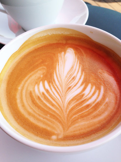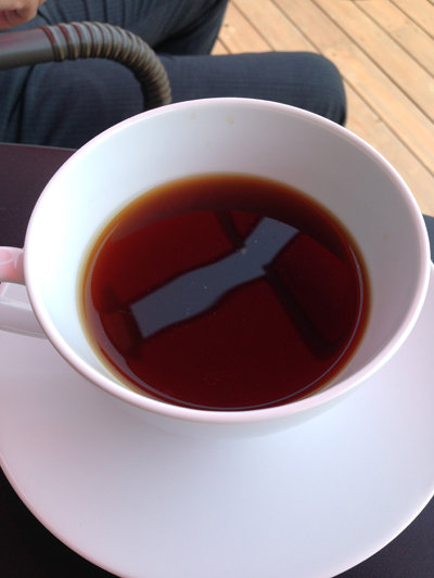 注文したコーヒーを受け取って、テラス席へ。