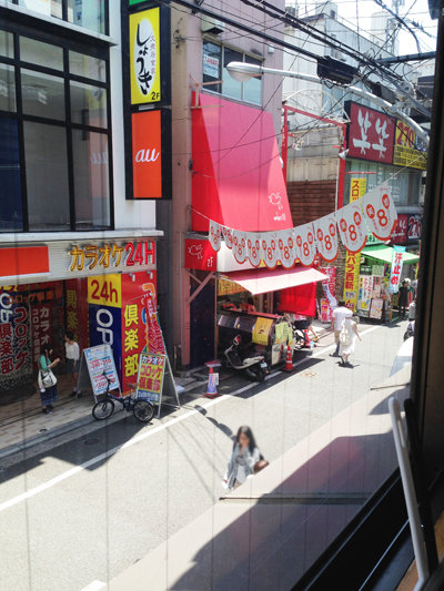 歩行者天国の時間帯には、リヤカー部隊が並ぶ活気ある商店街を眼下に望めます。