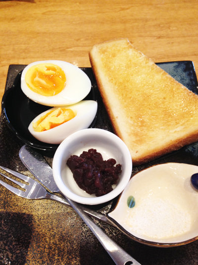 ゆで卵と小倉トーストセット。