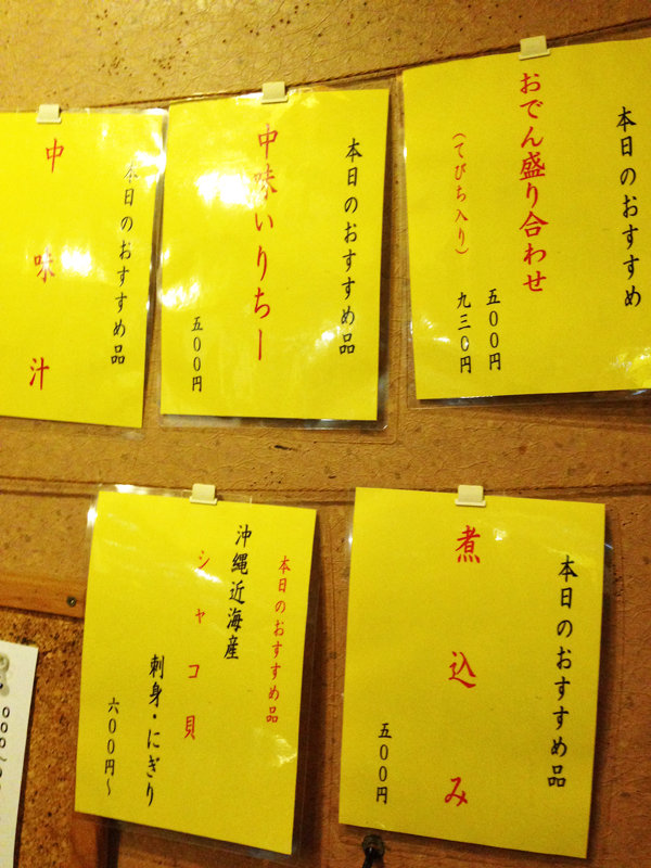 沖縄おでんと中味メニュー。