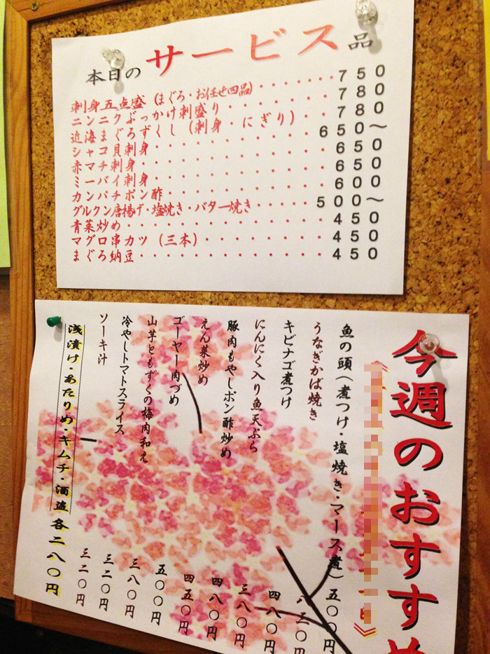本日のサービスとおすすめメニュー。