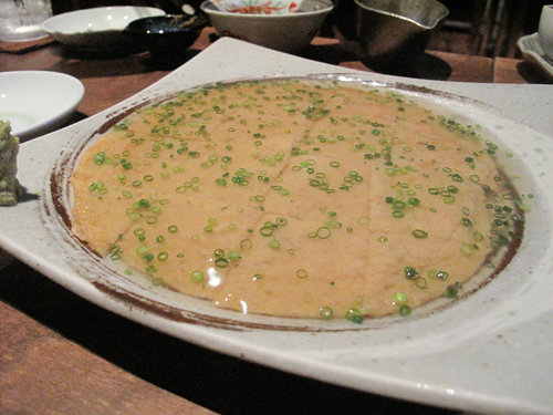 山芋のお好み焼きに出汁餡がかけられたようなもの。