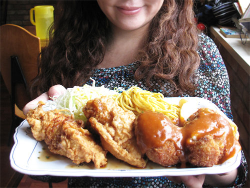 ちなみにクリームコロッケと唐揚げは、私のこぶし大位あります。