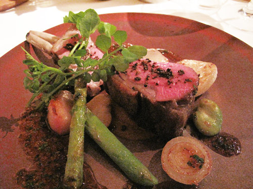 オーストラリア産仔羊のロースト そのジュとマスタードのソース 大分・佐藤自然農園の野菜を添えて。
