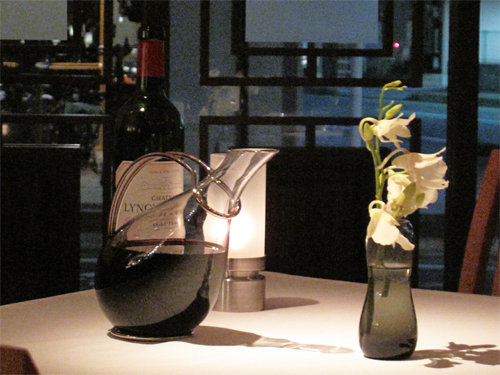 隣のテーブルには、出待ちのデキャンタージュされた赤ワイン。