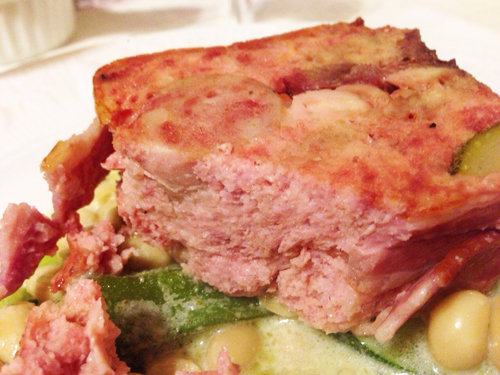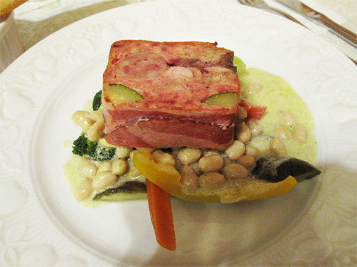テリーヌの下には大豆のカスレが敷いてありますが、あっさりクリーム煮込みの感覚です。