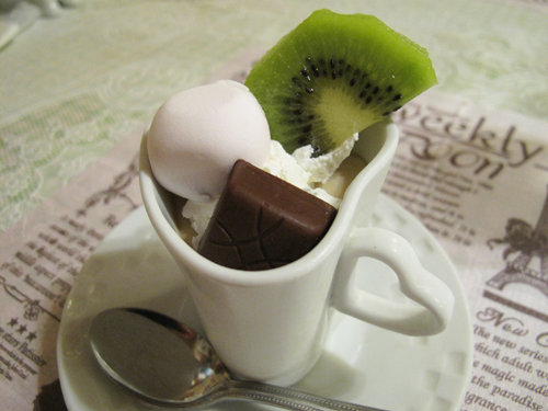 クリームプディング・チョコ・マシュマロ・キーウィ・生クリーム。