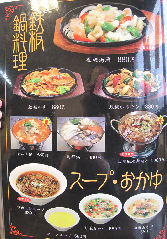 鉄板・鍋・スープ・お粥のメニュー。