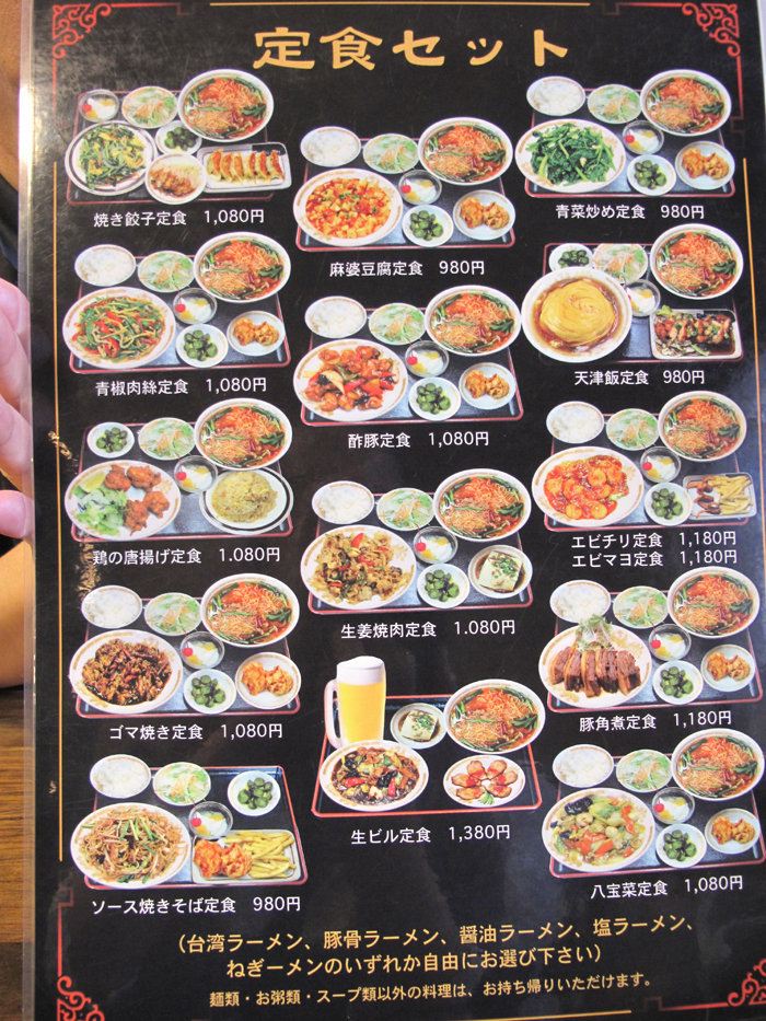 定食のメニュー。