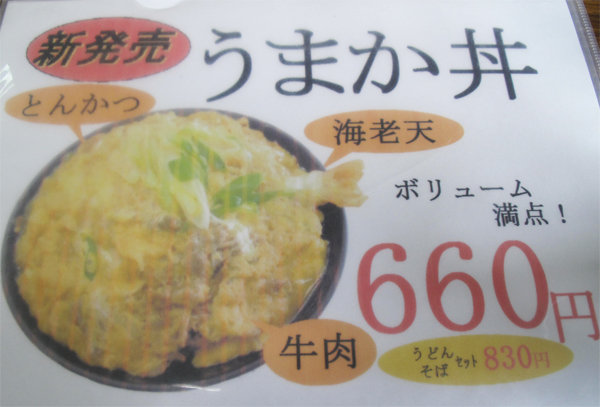 同じメニューで蕎麦もあって、丼や定食もあり、出前注文も多い、