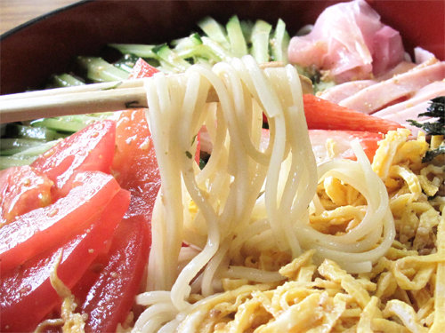 錦糸玉子・ハム・きゅうり・海苔・トマトスライス・カニカマ。
