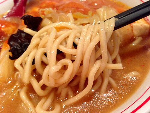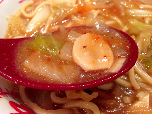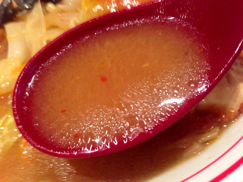 スープ自体はあっさりのピリ辛い味噌味です。