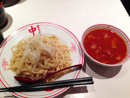 お店のメニューで一番辛いのは、つけ麺スタイルになります。