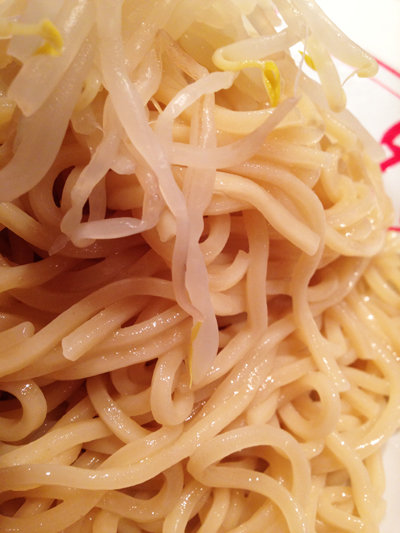 冷たい麺と茹でモヤシ。