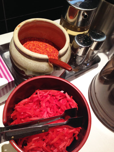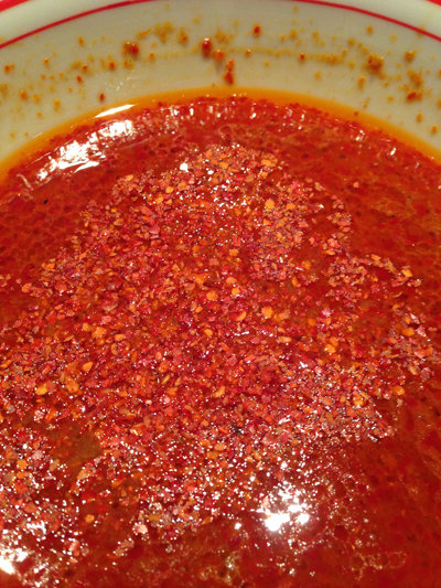 辛さが足りない場合は、卓上の唐辛子粉を補充します。