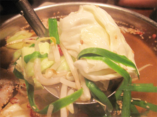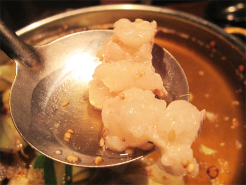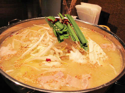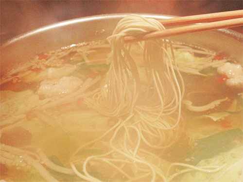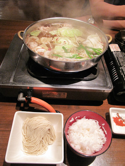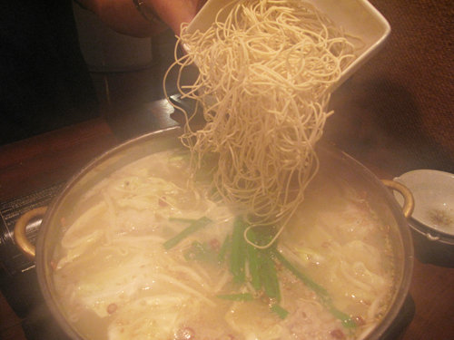 モツ鍋は中太麺のチャンポン麺で〆るのがスタンダードですが、