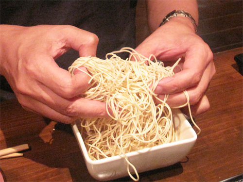 細麺なので、そのまま投入すると固まりやすいので、ほぐすといいでしょう(笑)。