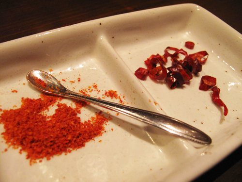 辛いのが好きなので、別に唐辛子を持ってきてもらいました。