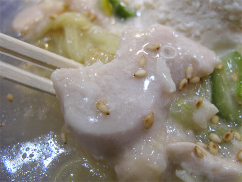 片栗粉をつけて湯引きしてあるので、トロっとした衣をまとってます。