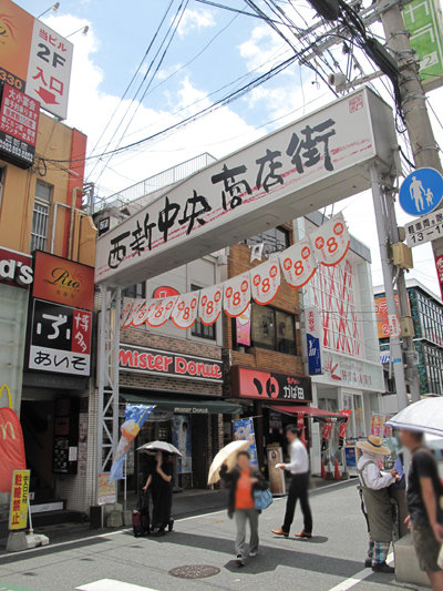 西新商店街の入口付近にあります。