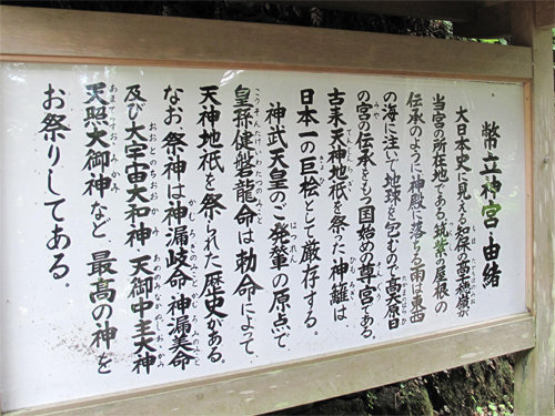 幣立神宮の由来が書かれた看板があります。