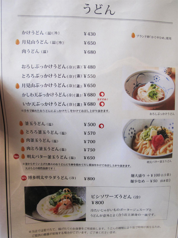うどんのメニューです。