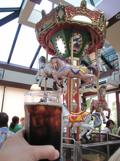 食後は、隣のミスドのカルーセルの下でアイスコーヒーを頂きました。