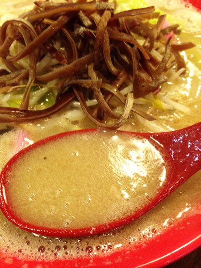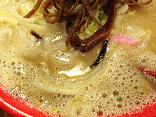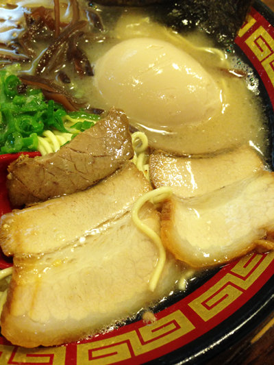 こちらも良い意味で鼻に突く豚骨アロマが印象的。