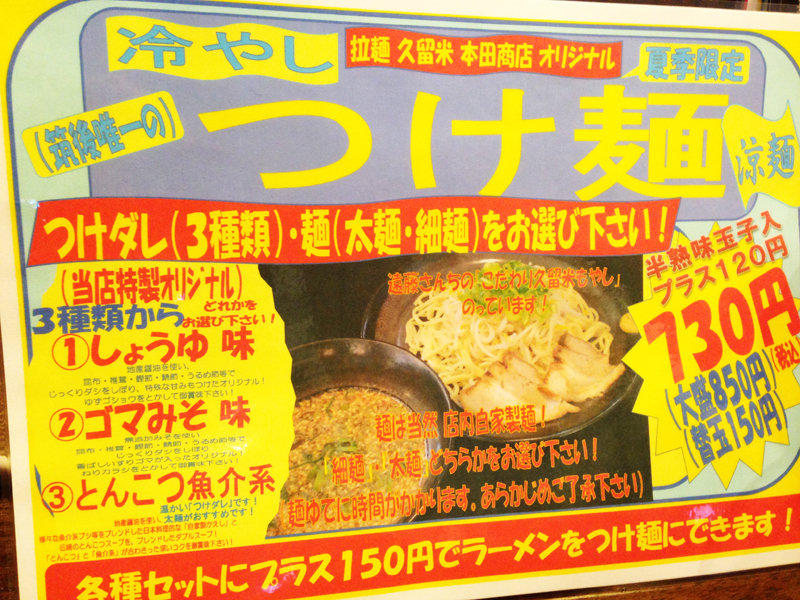 夏季限定のつけ麺メニューもありますが、