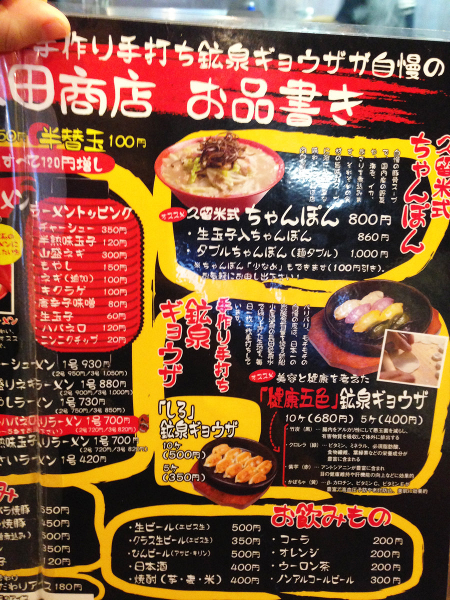 久留米ラーメンと久留米式チャンポンと健康五色鉱泉ギョウザ♪@本田商店