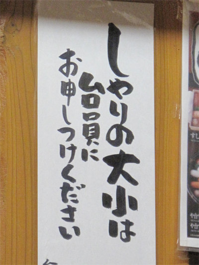 お寿司のしゃりのサイズ(大小)もリクエスト可能です。