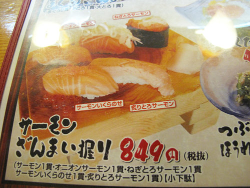 マグロづくしはよく聴きますが、サーモンざんまい握りは珍しい。