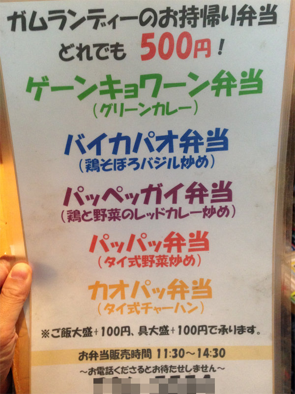 パッパッ(タイ式野菜炒め)弁当というのがヨサゲです(笑)。