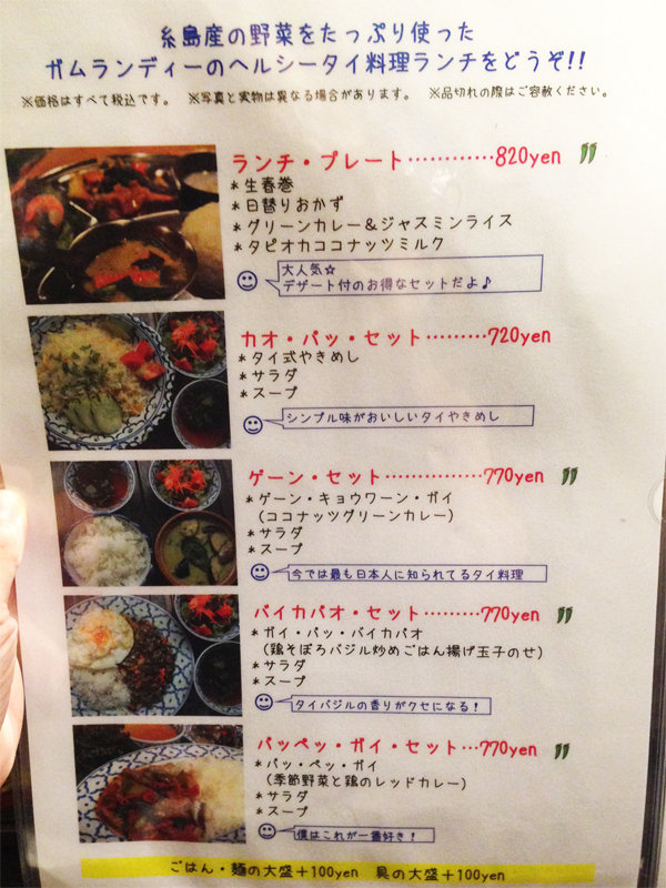 1. 天神西通り・大名エリアのチープ可愛いタイ食堂♪@ガムランディー [ 博多おんな節。 ] 2014年10月10日 10:11