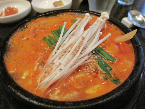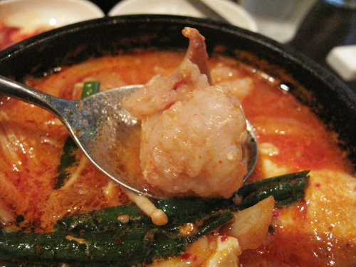 グツグツ血の池地獄状態でやってきたスンデゥブチゲ。
