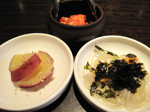 パンチャンは春雨の和え物とサツマイモの甘煮。