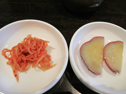 センチェ(大根千切りのキムチ)とさつまいもの甘煮です。