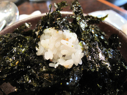 なんと、指先大に握った白ご飯に韓国海苔をまぶしたものでした。