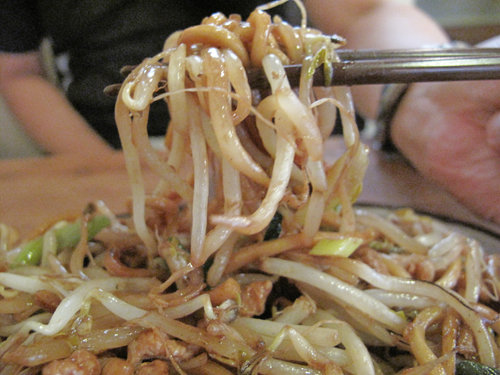 焼きそばです。具はモヤシ・ネギ・豚肉など。