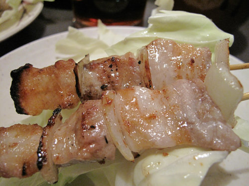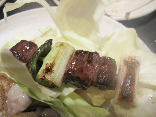 焼鳥はこのキャベツの上に供されます。