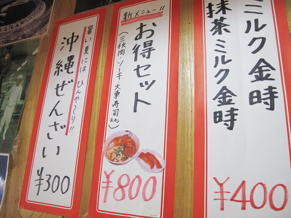 看板メニューの大東そばと大東寿司は絶対ですね。