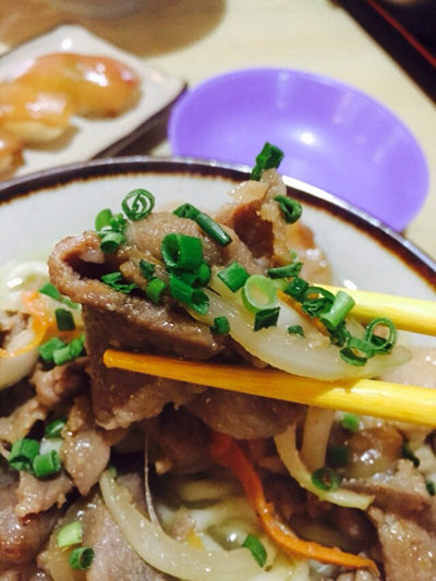ちょっと濃い味の豚肉スライスが沢山のってます。