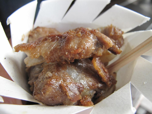 すっごく柔らかく下処理した豚軟骨を表面カリカリに塩焼きしたものです。
