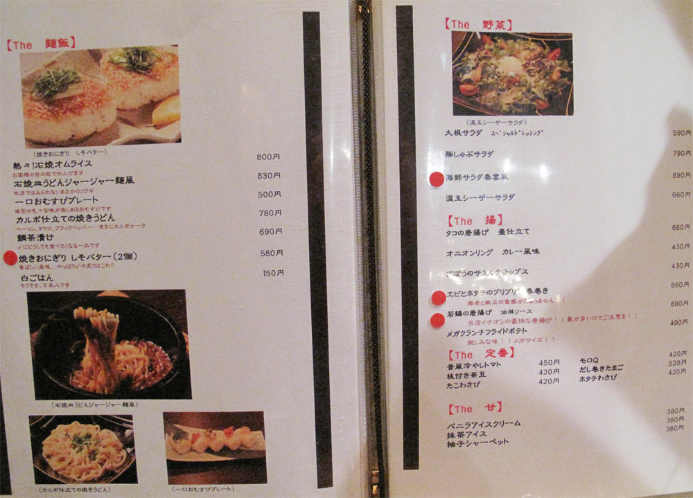 看板料理のメニュー。