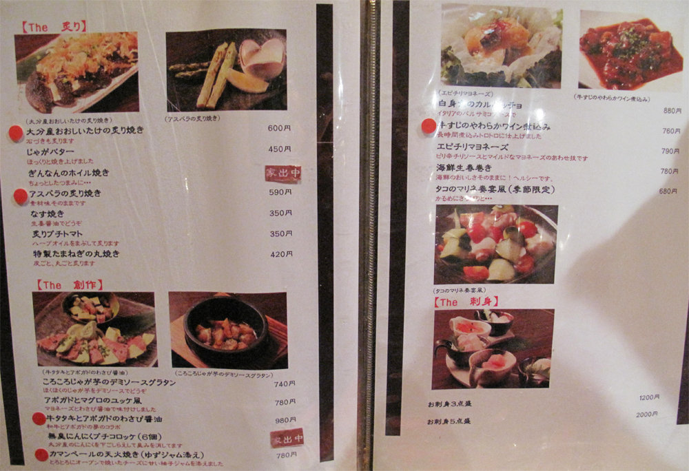 炙り・創作・刺身のメニュー。