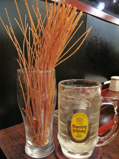 お通しはパスタの素揚げ。ほんのり塩味がします。