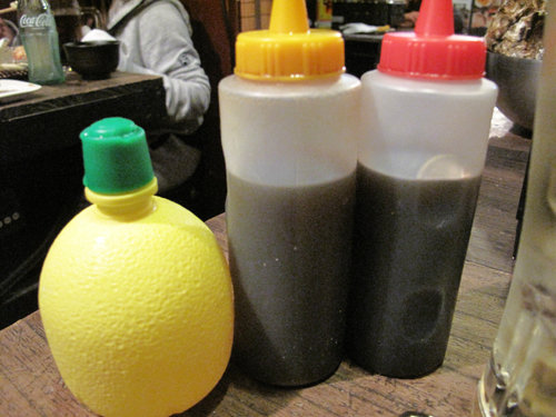 卓上には、レモン汁・ポン酢・醤油が置いてあります。