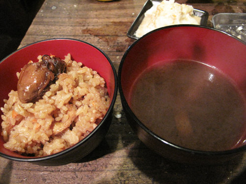 牡蠣ご飯とみそ汁。